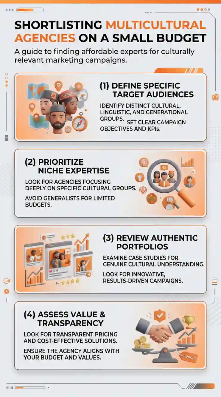For brands with limited budgets, this is genuinely good news. The multicultural agency landscape includes highly qualified, culturally embedded partners operating at accessible price points. Finding them requires knowing what to look for — which is exactly what the shortlisting criteria above are designed to help you do.